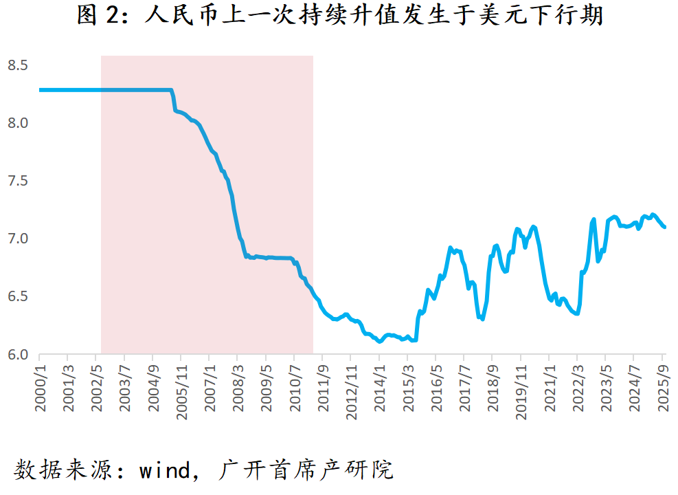 2010~2019年,美国经济增速区间为1.55%~3.08%,均值2.27%;疫情后增长节奏趋于平稳,2024年增速为2.8%。尽管AI投资、能源出口等有可能为美国经济增长提供一定支撑,但关税战、巨额政府债务、美元霸权衰弱等因素会拖累其增长。未来五年,不考虑疫情、战争等特殊阶段,美国经济年度增速不会显著偏离2%的平均水平。经济增长差异是影响汇率变动的基础性因素,“中快美慢”的中长期增长格局反映了两国经济基本面的相对强弱,为人民币内在价值的持续提升奠定了坚实基础。